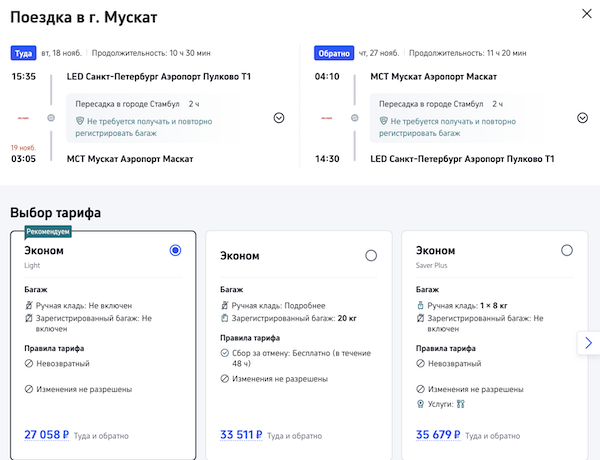 Рейсы выполняются авиакомпанией Pegasus с короткой пересадкой в Стамбуле.