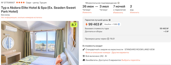 Стоимость в примерах указана за одного человека при условии поездки вдвоем, стоимость туров для одного человека можно посмотреть здесь или на страницах отелей.