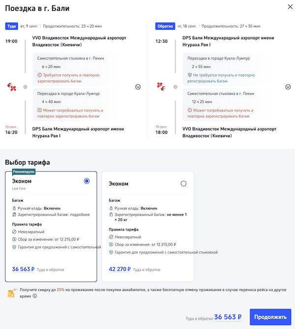 Билеты из Владивостока на Бали от 36.600 рублей туда-обратно.