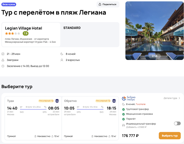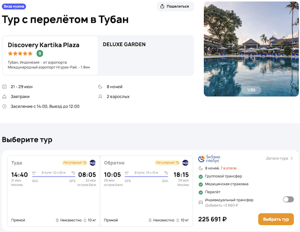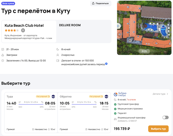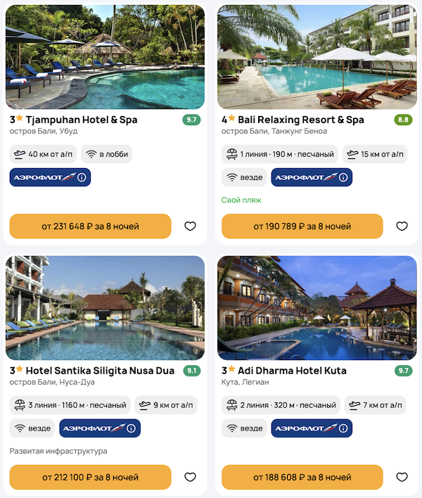 — прямой перелет в Денпасар и обратно, Аэрофлот;