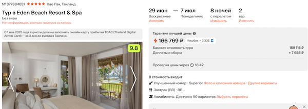 Eden Beach Resort & Spa 5* с завтраками 83.400 рублей за человека (166.800 рублей за двоих)