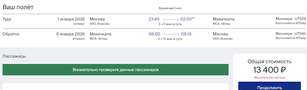 В Дагестан на Новый год: билеты из Москвы в Махачкалу на пиковые даты 13.400 рублей туда-обратно.