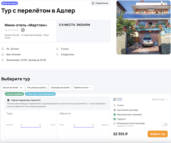 Стоимость в примерах указана за одного человека при условии поездки вдвоем, стоимость туров для одного человека можно посмотреть здесь или на страницах отелей.