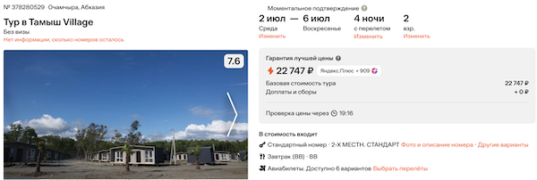 Тамыш Village с завтраками 11.300 рублей за человека (22.700 рублей за двоих)