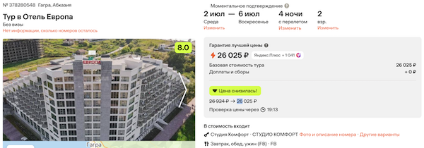 Горящие туры из Москвы в Абхазию от 10.500 рублей за человека.
