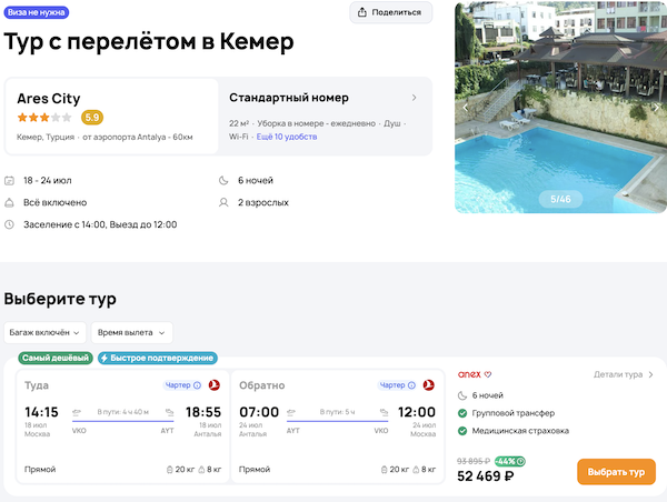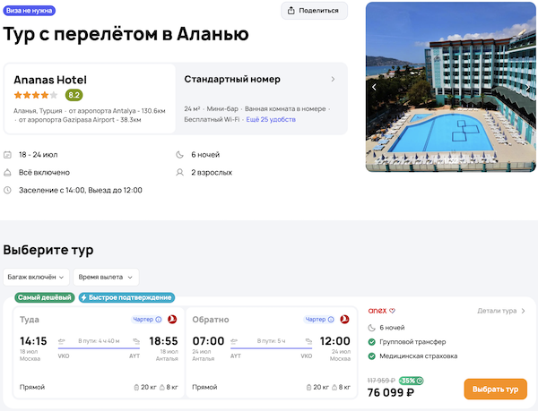 Стоимость в примерах указана за одного человека при условии поездки вдвоем. Стоимость туров для 1 человека можно посмотреть здесь или на странице отелей, изменив количество туристов.