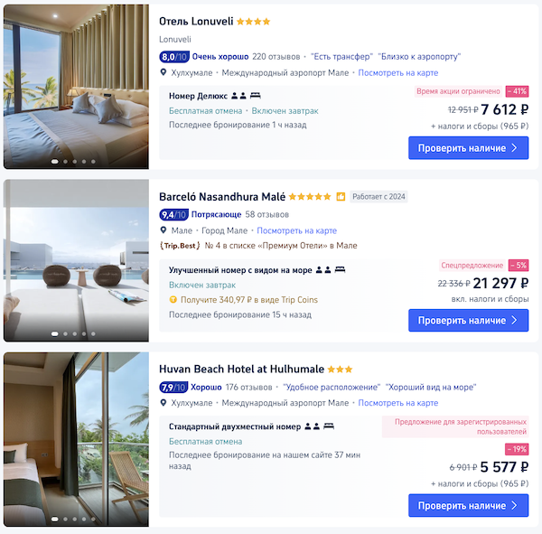 Как забронировать: перейдите по ссылкам в примерах или выберите другие даты на трип.ком.