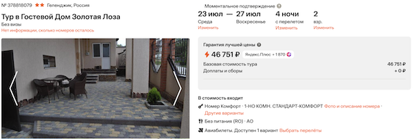 Туры из Москвы в Геленджик: перелет Аэрофлотом и 4 ночи в отеле от 23.400 рублей за человека.