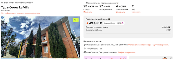 Отель La Villa 24.700 рублей за человека (49.500 рублей за двоих)