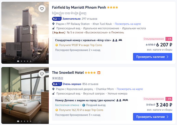 Отели с оплатой российской картой на трип.ком