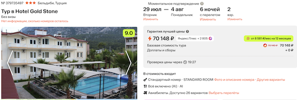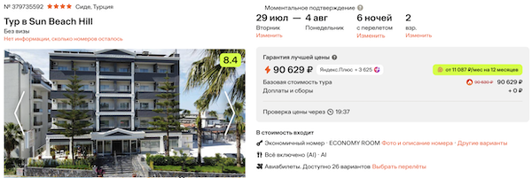 Горящие туры из Москвы в Турцию от 25.900 рублей за человека.