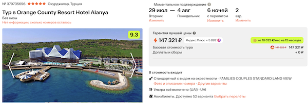 Стоимость в примерах указана за одного человека при условии поездки вдвоем. Стоимость туров для 1 человека можно посмотреть здесь или на странице отелей, изменив количество туристов.