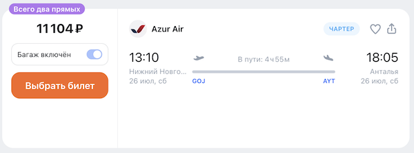 Горящие билеты на прямые чартерные рейсы в Турцию из Нижнего Новгорода 18.900 рублей туда-обратно.