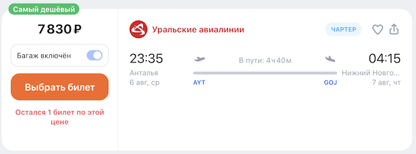 В Нижний Новгород 6 августа 7.800 рублей (билетов много)