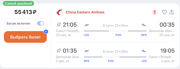 Рейсы выполняются авиакомпанией China Eastern с пересадкой в Шанхае.