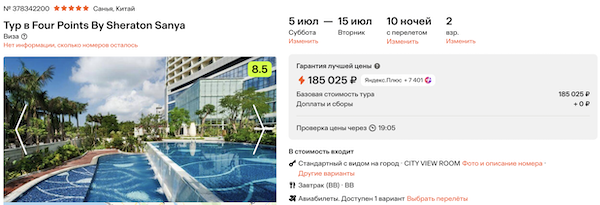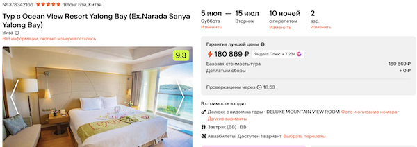 Горящие туры из Санкт-Петербурга на остров Хайнань от 75.300 рублей за человека.