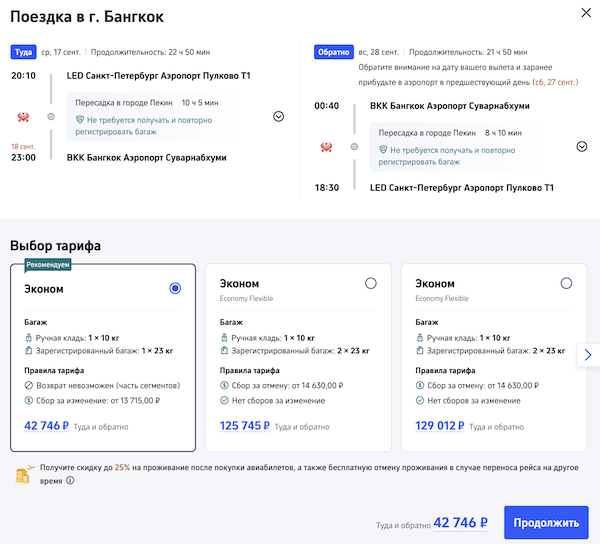 Из Санкт-Петербурга в Таиланд в сентябре от 42.700 рублей туда-обратно.