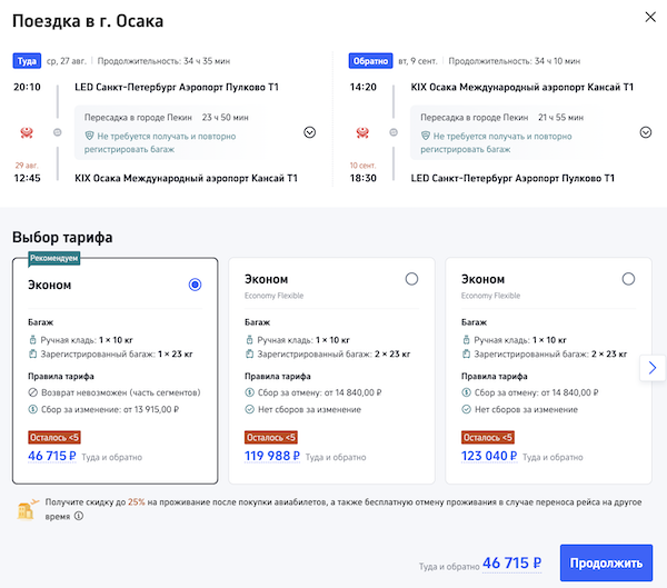 Из Санкт-Петербурга в Японию в конце лета: билеты в Осаку от 46.700 рублей туда-обратно.
