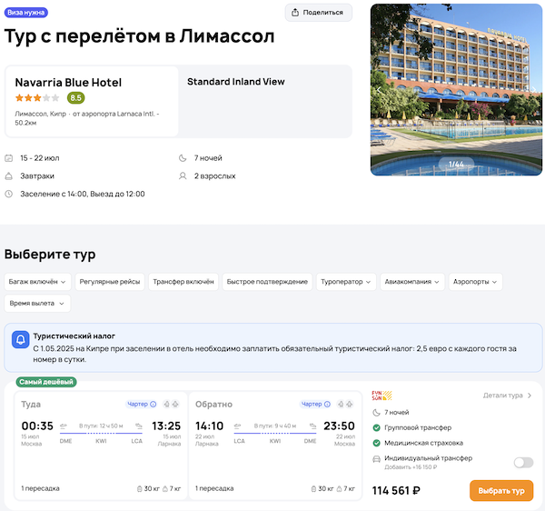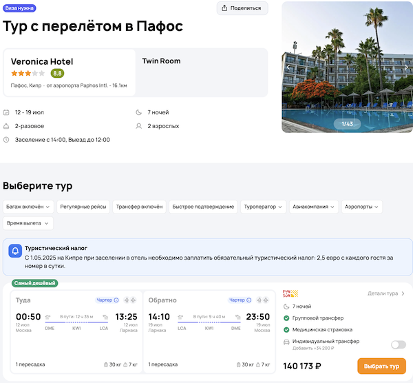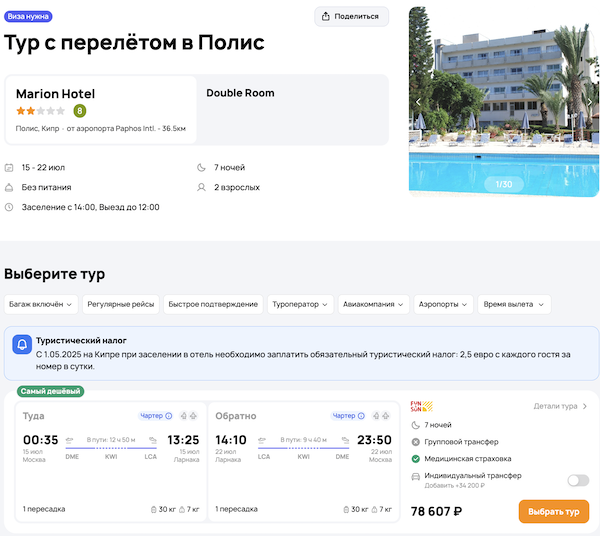 Новые даты в июле: туры из Москвы на Кипр от 39.300 рублей за человека.