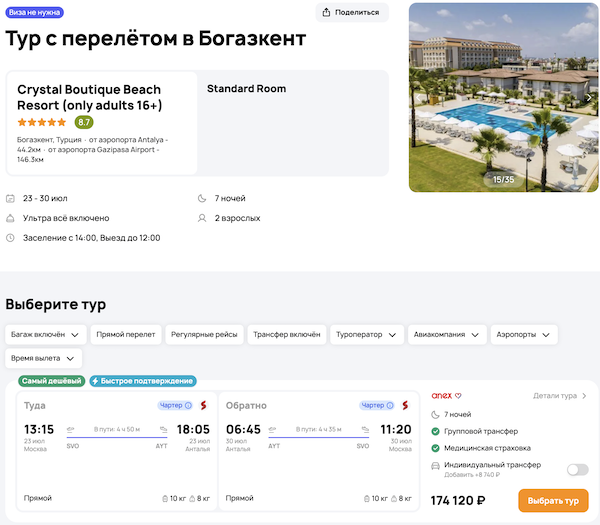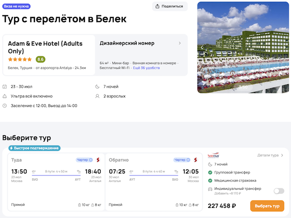 Стоимость в примерах указана за одного человека при условии поездки вдвоем, стоимость туров для одного человека можно посмотреть здесь или на страницах отелей.