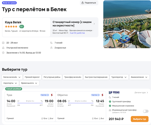 Kaya Belek 100.900 рублей за человека (201.900 рублей за двоих)
