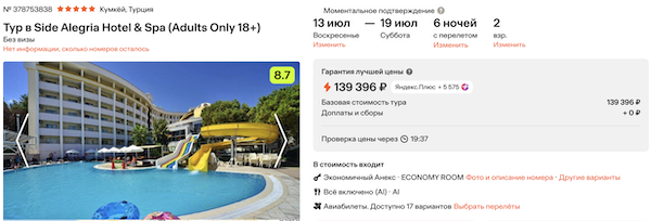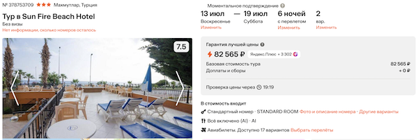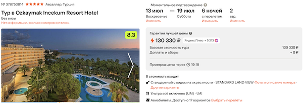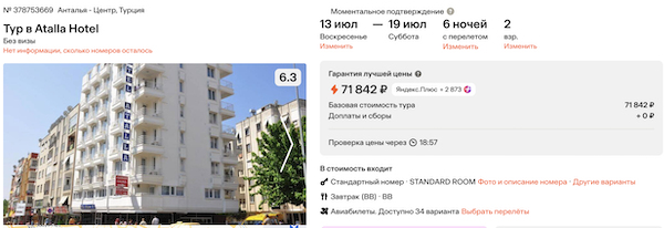 Стоимость в примерах указана за одного человека при условии поездки вдвоем. Стоимость туров для 1 человека можно посмотреть здесь или на странице отелей, изменив количество туристов.