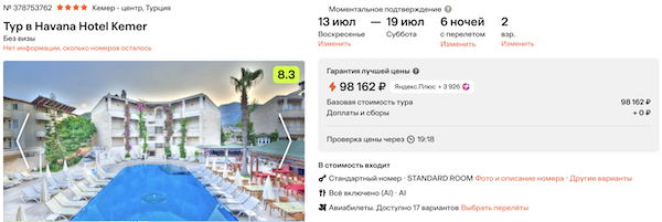 Havana Hotel Kemer 4* все включено 49.100 рублей за человека (98.200 рублей за двоих)