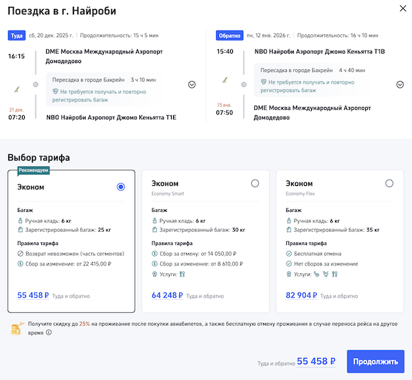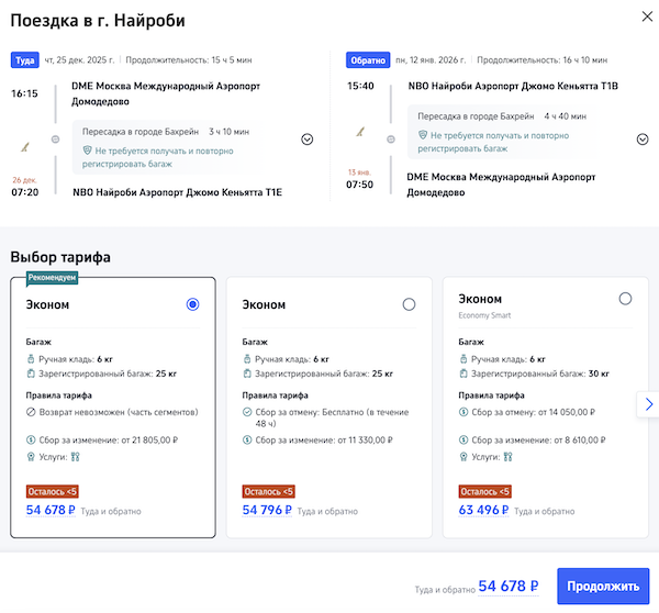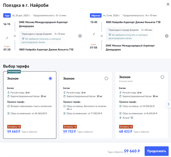 Новый год в Кении: билеты из Москвы в Найроби от 54.700 рублей туда-обратно.