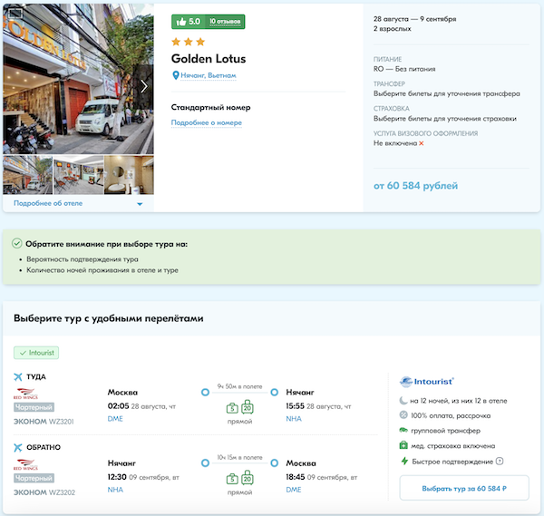 Стоимость в примерах указана за одного человека при условии поездки вдвоем. Стоимость туров для 1 человека можно посмотреть здесь или на странице отелей, изменив количество туристов.