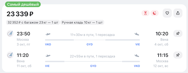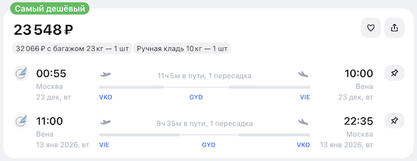 Архив. Из Москвы в Австрию 23 300 рублей