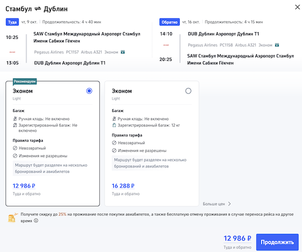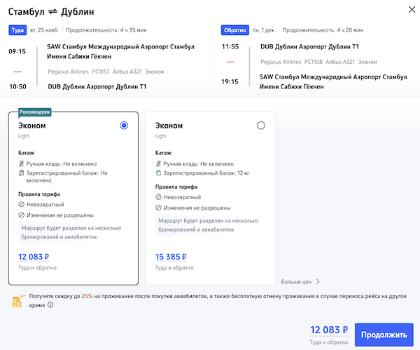 Как забронировать: перейдите по ссылкам в примерах. Необходимо купить 2 отдельных билета: Стамбул — Дублин и Москва — Стамбул.
