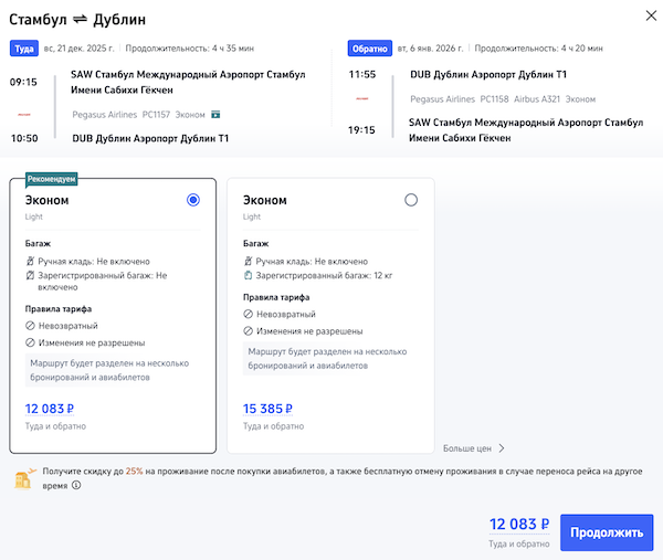 Есть варианты и на Новый год. Например, Стамбул — Дублин с 21 декабря по 6 января.
