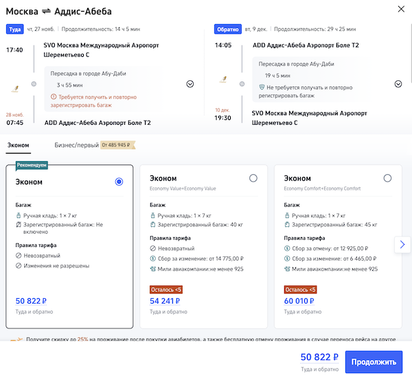 Из Москвы в Эфиопию авиакомпанией Etihad от 50.800 рублей туда-обратно.