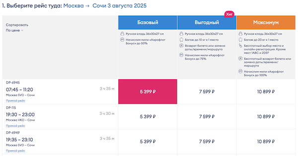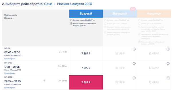Минимальные цены со 2 по 3, 4, 5 августа.