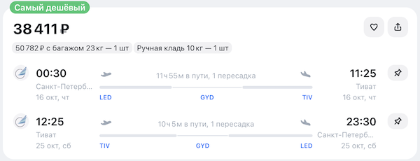 В Черногорию осенью: билеты из Санкт-Петербурга в Тиват 38.400 рублей туда-обратно.