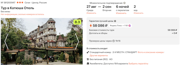 Стоимость в примерах указана за одного человека при условии поездки вдвоем, стоимость туров для одного человека можно посмотреть здесь или на страницах отелей.