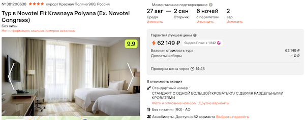 Novotel Fit Krasnaya Polyana 4* 31.000 рублей за человека (62.100 рублей за двоих)