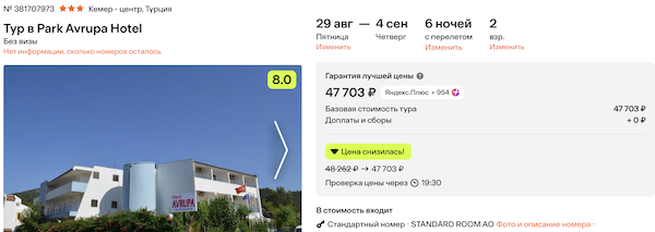 Горящие туры из Москвы в Турцию от 23.800 рублей за человека.