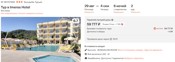 Imeros Hotel 3* все включено 29.900 рублей за человека (59.800 рублей за двоих)