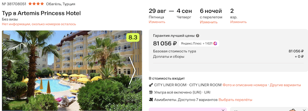 Artemis Princess Hotel 4* ультра все включено 40.500 рублей за человека (81.100 рублей за двоих)