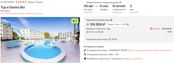 Daima Biz 5* ультра все включено 62.200 рублей за человека (124.500 рублей за двоих)