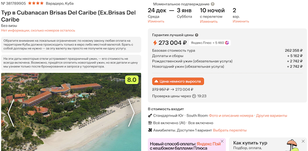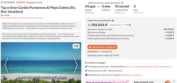 Новый год на Кубе, все включено: туры из Москвы в Варадеро от 129.400 рублей за человека.