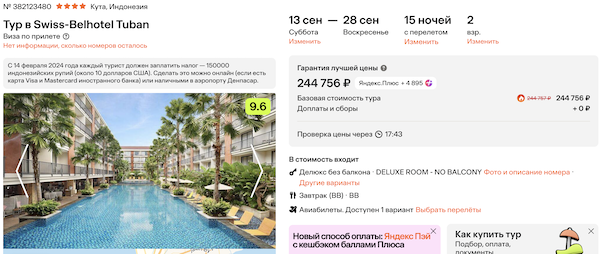 — прямой перелет в Денпасар и обратно, Аэрофлот;