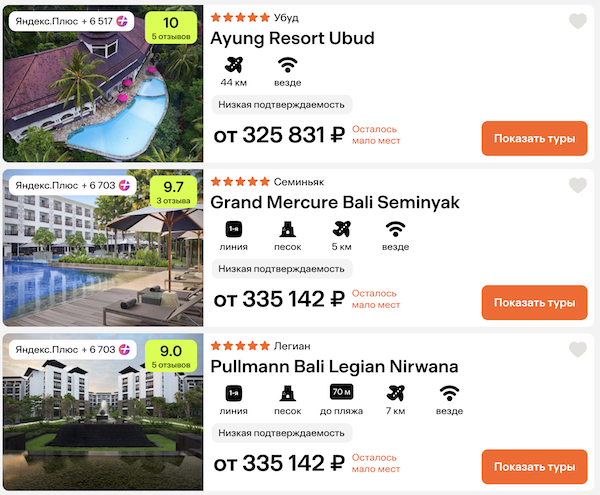 Стоимость в примерах указана за одного человека при условии поездки вдвоем, стоимость туров для одного человека можно посмотреть здесь или на страницах отелей.
