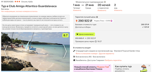 3 недели на Кубе, все включено: туры из Москвы от 145.400 рублей за человека.