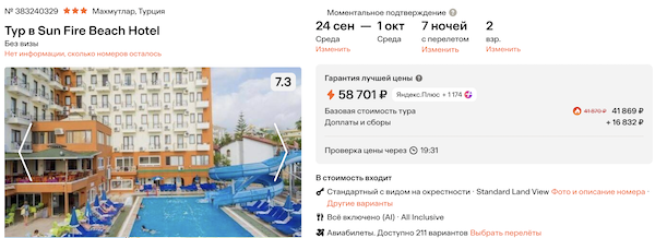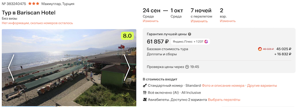 Стоимость в примерах указана за одного человека при условии поездки вдвоем, стоимость туров для одного человека можно посмотреть здесь или на страницах отелей.