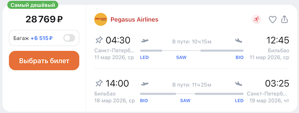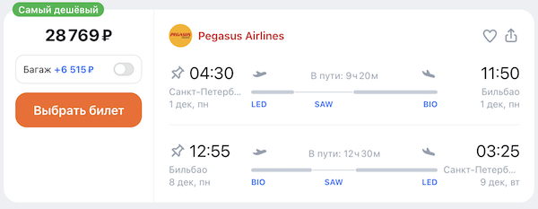 Рейсы выполняются авиакомпанией Pegasus с короткой пересадкой в Стамбуле.