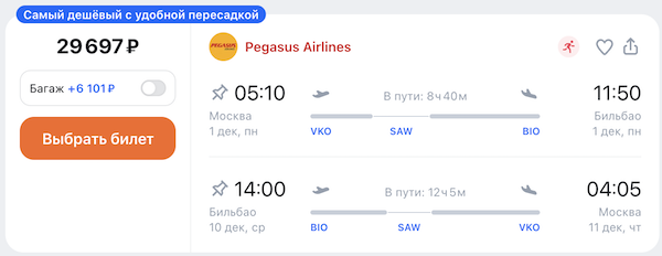 Из Москвы и Санкт-Петербурга в Испанию: билеты в Бильбао от 28.800 рублей туда-обратно.
