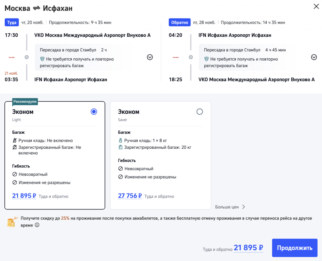 Рейсы выполняются авиакомпанией Pegasus с пересадкой в Стамбуле.