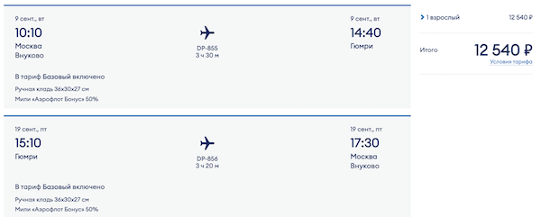 Билеты в Гюмри на сайте Победы. Доступно много дат в сентябре по ценам от 12.500 до 14.000 рублей.